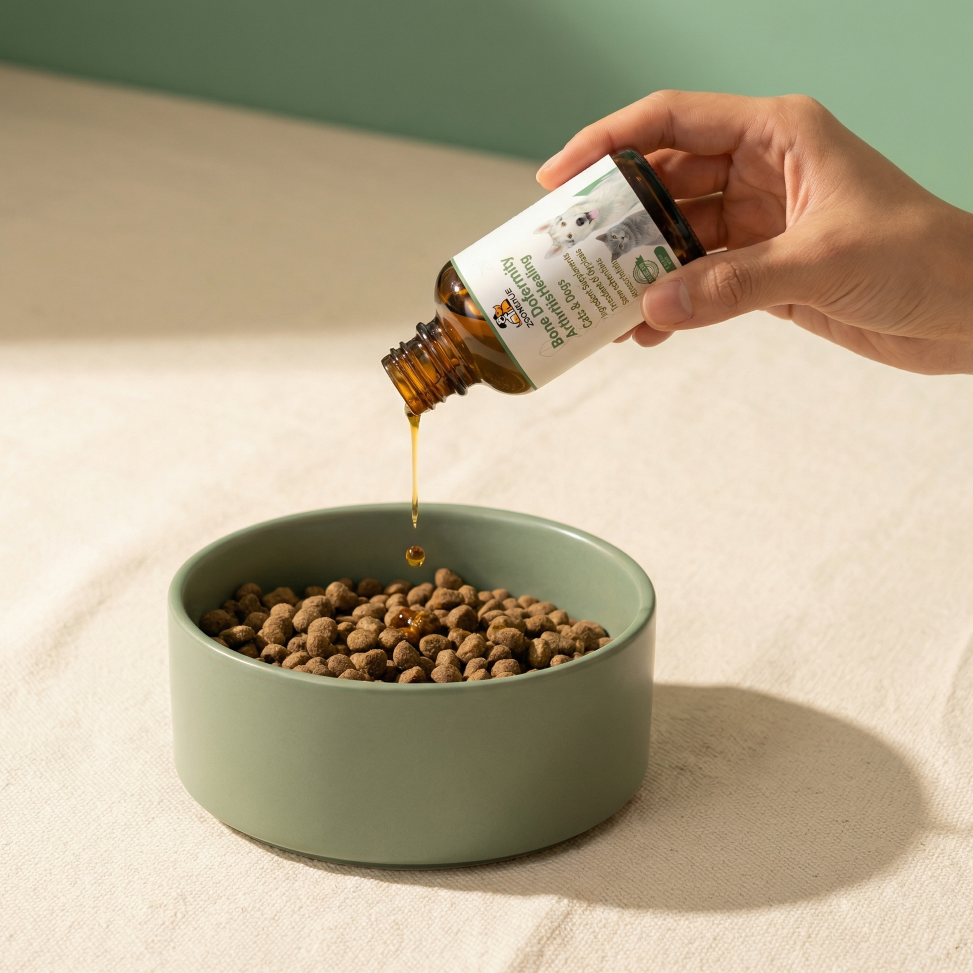 A few drops into their bowl. No hiding. No fighting. No more wasted supplements.