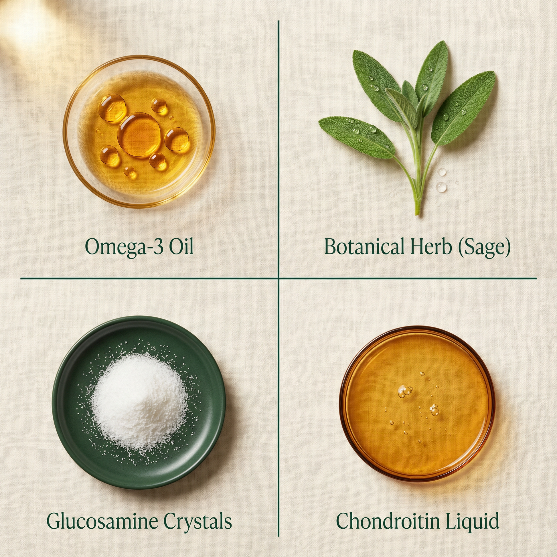 Glucosamine — Supports cartilage rebuilding and cushions aging joints.